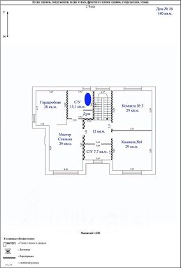 Второй этаж (~ 98.7 м²) — приватная зона для отдыха. Здесь расположена роскошная мастер-спальня с собственной гардеробной 18 м² и просторным санузлом 13 м², где разместилась душевая и отдельно стоящая мраморная ванна. Дополняют ансамбль две изолированные спальни по 29 м² каждая и еще один санузел.