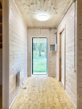 1 этаж: прихожая, санузел, кухня-гостиная (можно сделать зонирование или поделить на отдельную комнату + вырезать окошко или сделать понорманое окно и выход на террасу )