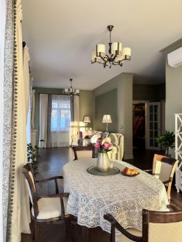 Первый этаж:прихожую отделяют большие деревянные распашные двери от просторного холла соединяющего гостиную переходящую в кухню с выходом на веранду с понорамными окнами.Гостивая комната.Постирочная с сан узлом, и с скрытом местом для хранения.Второй этаж: мастер спальня с большим сан узлом и отдельно стоящей ванной.Вторая спальня.Гостевой сан узел с душем.Большая гардеробная комната сделанная на заказ(с возможностью переделать в детскую спальню).Кабинет( библиотека).Все комнаты второго этажа соединяет просторный холл.При ремонте применялись премиальные материалы( обои английские, краска Швейцария, розетки и выключатели фирмы Jung ), двери деревянные (ясень)на заказ высотой 2,3 метра с итальянской фурнитурой ,входная дверь с теплоразрывом металл.техника кухня: духовой шкаф, варочная панель микроволновая печь gorenje,