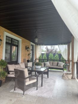 Продается новый каменный дом 220 кВ метров,10 соток земли 2021 года постройки с новым дизайнерским ремонтом, с мебелью, техникой,освещением(полностью укомплектованный)готовый к проживанию. В охраняемом поселке бизнес класса кп Русская деревня от мкада 17 км, от центра 26 км по Новорижскому шоссе,(канализация , вода-общие),газ. По периметру забора высажены туи,газон. Ворота автоматические кованные.Фундамент бетонная плита , стены газобетонный блок YTONG, утеплитель, кирпич (ширина стены 60см) , перекрытия между этажами бетонные, мягкая черепица на крыше.Открытая летняя терраса на бетонном основании ,отделанная керамогранитом 40 кв метров огороженная кованными перилами на заказ, на зиму закрывается мягкими окнами.Вход в бойлерную отдельный с веранды.Стоят фильтры на очистку воды.Теплые полы по периметру всего 1 этажа, а так же во всех сан узлах.