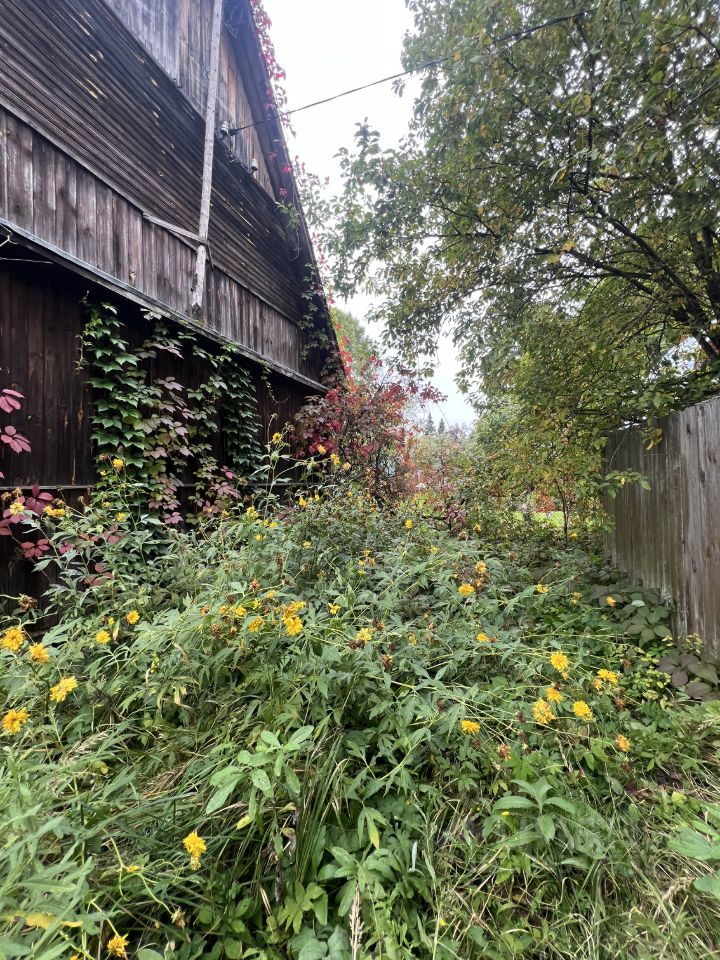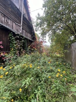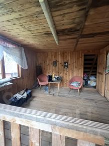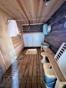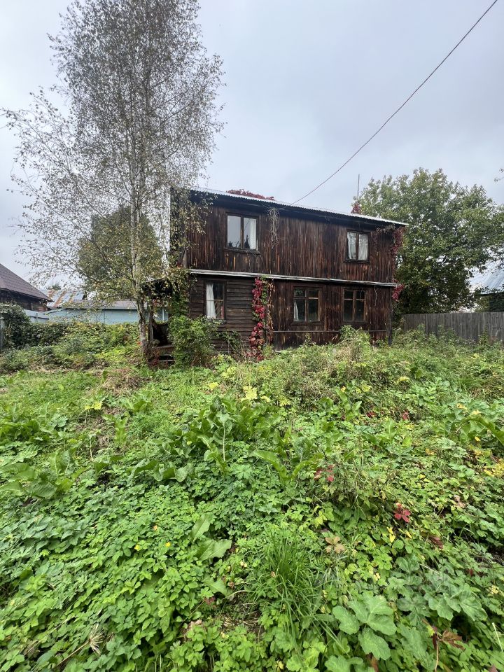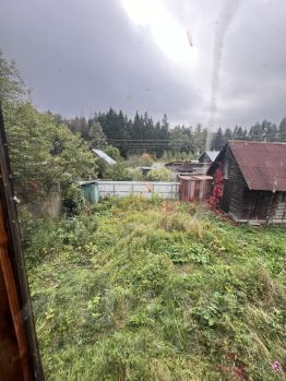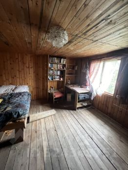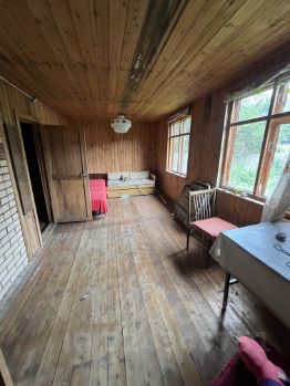 1 этаж дома - брус, внутри обит вагонкой. 2 этаж - щитовой, утеплен стекловатой, обит вагонкой. В доме печь, 4 комнаты.