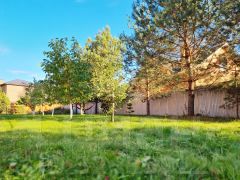 И вот, перед вами предстает обитель, достойная царя! Дом, стоящий на просторном, ухоженном участке, словно корабль, бросивший якорь в тихой гавани. Участок, весь в изумрудной зелени газона, усыпанного яркими красками плодовых и декоративных деревьев, словно волшебный сад, сотканный из летнего сияния.