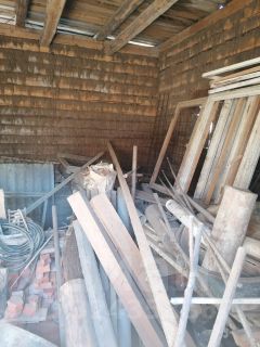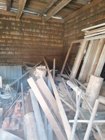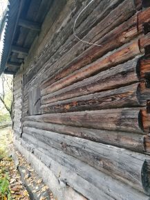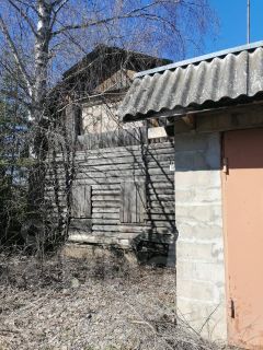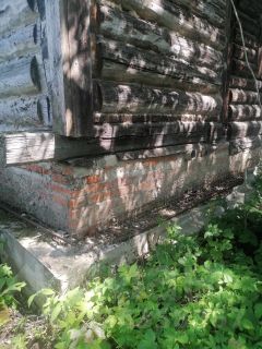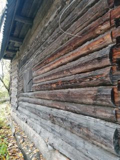 Сруб из сосны строился "для себя" начиная от выбора деревьев в лесу, стоит на высоком фундаменте, т.к. в этом районе близко грунтовые воды. Сруб в полностью в сохранном состоянии, крыша и мансарда требуют вложений. Внутри дома много строительных материалов, включая оконные рамы (деревянные), арматура, дерево, трубы и т.д.