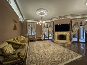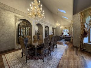 1 этаж: столовая зона с камином и выходом на застекленную летнюю веранду; кухня, укомплектованная техникой Miele; зона отдыха, выполненная в восточном стиле; гостиная-столовая для официальных встреч с отдельным выходом на участок; спальня с гардеробной и санузлом.