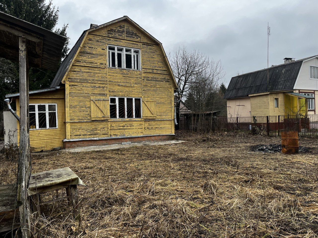 Дом площадью 64 кв. метра расположен на участке 6 соток. В доме имеются 3 спальни, кухня-гостиная, прихожая и печь. Дом стоит на крепком фундаменте без трещин, по периметру дома сделана солидная бетонная отмостка. Электрика в доме заменена. Фасад выполнен в стиле "доска к доске" и не требует замены, но дом нуждается в обновлении и покраске.