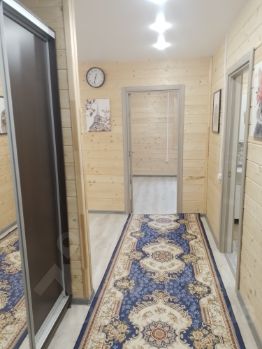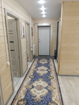 Удобная планировка: бойлерная, санузел, кухня-гостиная, три комнаты и терраса 20м2. Внутренняя отделка выполнена с заботой о вашем комфорте: полы из ламината, натяжные потолки, стены с имитацией бруса, а санузел оборудован всей необходимой сантехникой.