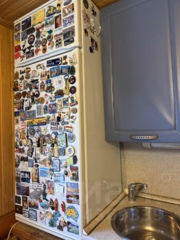 Каркасный дом снаружи обшит доской, крыша металлическая оцинкованная, меблирован, кухня оснащена бытовой техникой (газовая плита, холодильник).