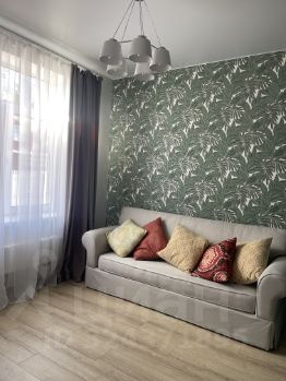 Качественные отделочные материалы, стильный дизайн, хорошая сантехника! Корпусная мебель выполнена под заказ. Встроенная бытовая техника. Посудомоечная машина, холодильник, микроволновая печь, духовой шкаф, стиральная машина, газовая плита.