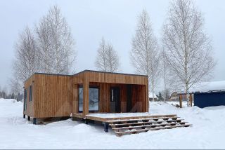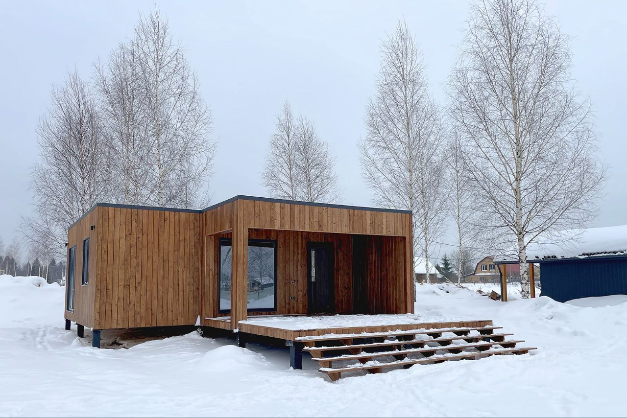 - Построен по современной каркасно-щитовой технологии из фабричных модулей — 5 секций, собранных с соблюдением всех стандартов энергоэффективности и качества.