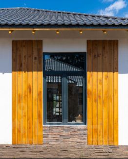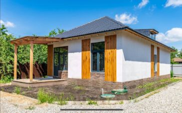 Фасад отделан из декоративно-защитной штукатурки - 20-30 мм и фасадной краски.