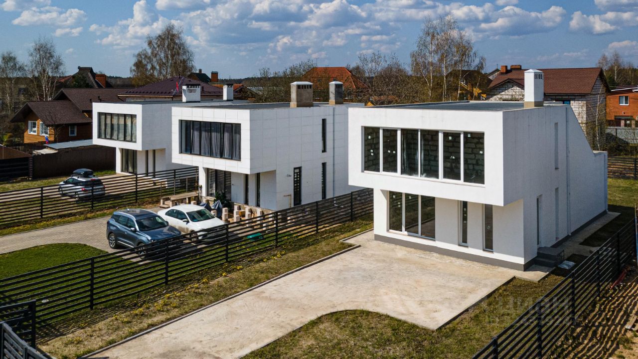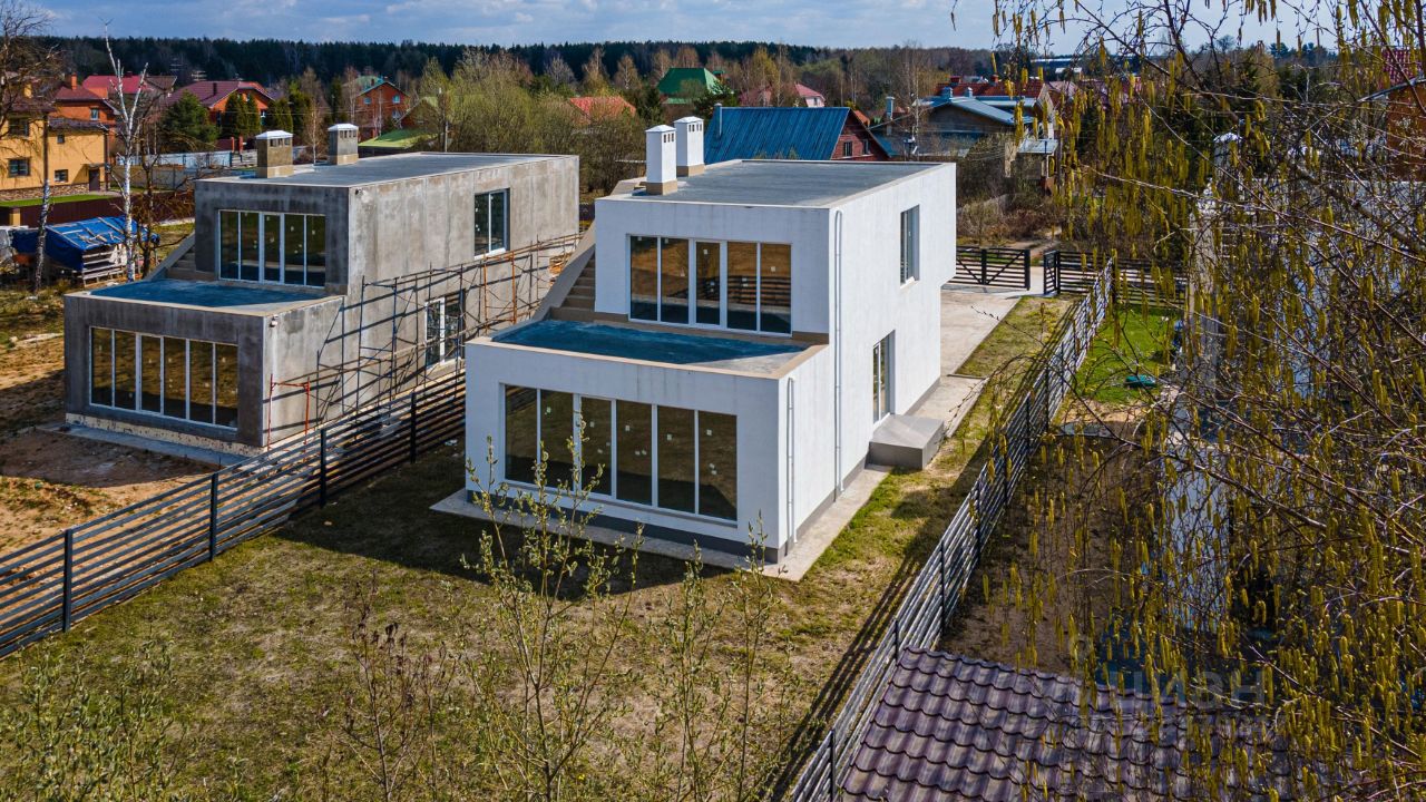 В стоимость входит готовый дом: монолитный фундамент, стены, монолитные перекрытия и отделка фасада (штукатурка и окраска), кровля плоская утепленная с гидроизоляцией, витражные окна в пол "Pexay", входная дверь, забор (деревянный).