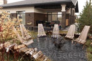 * снаружи дом дополняет стильная гирлянда.