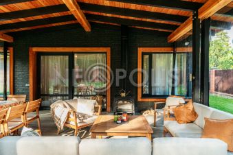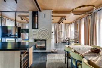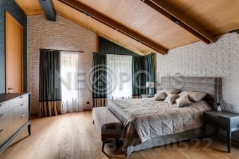 Этот дом построен в 2020 году и сразу задаёт уровень. Кирпичные стены, отделка фасада камнем и лиственницей — сочетание, которое не теряет актуальности и десятилетиями смотрится статусно. Внутри — дерево, искусственный камень, грамотный свет и тишина, которую невозможно подделать. Фундамент — плита, надёжность — максимальная.