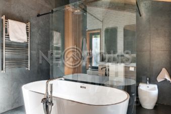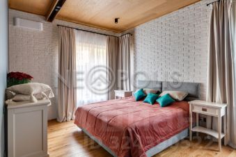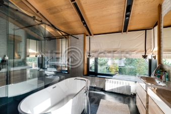 Второй этаж — приватная зона. Мастер-спальня со своей ванной и гардеробной, ещё одна спальня с индивидуальным санузлом, две дополнительные спальни, кабинет, санузел и гардеробная.