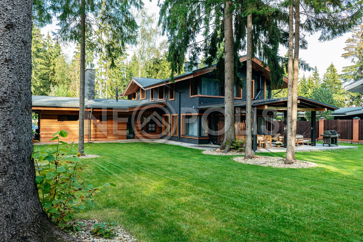 Участок — 12 соток, прилесной, с вековыми елями, которые создают атмосферу уединения и природного спокойствия. Правильная форма участка позволяет размещать зоны отдыха так, чтобы никто никому не мешал. Въезд — через автоматические ворота. Парковка — на 3 автомобиля.