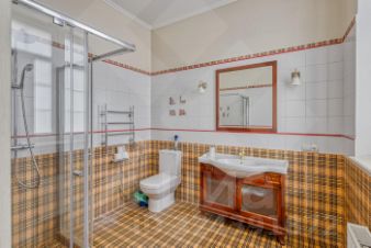Полы паркетная доска и мраморная плитка, лестницы мрамор. Двери массив. Водяные теплые полы. Установлены 2 газовых котла De Dietrich, бойлер на 300 литров и система очистки воды. Во всех комнатах установлены кондиционеры.