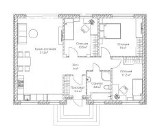 Планировка дома: 3 спальни, просторная кухня-гостиная с выходом на участок, 1 с/у, прихожая, крыльцо.