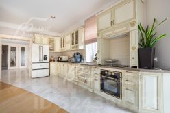 Мебель, оборудование: дом полностью укомплектован дорогой мебелью в едином, классическом стиле, в единой цветовой гамме, выполненной на заказ из массива дуба и ясеня (производитель "Пинскдрев" (Белоруссия), серия Elite). На кухне: гарнитур из массива ольхи с резьбой и витражами на верхних фасадах, встроенная техника (духовой шкаф и вытяжка Kuppersberg, варочная панель Bosch); двухстворчатый холодильник с ледогенератором Kaiser; столешница из искусственного камня.