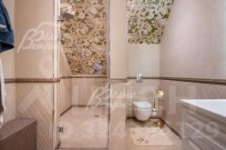 В санузлах немецкая сантехника Duravit, смесители Hansgrohe и душевые системы, оснащенные терморегуляторами. Столешницы всех раковин выполнены на заказ, из искусственного камня..