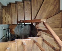 На первом этаже, при входе, располагается просторная кухня, объединенная с прихожей. Далее находится небольшая комната с лестницей, ведущей на второй этаж, где расположена еще одна спальня. Также на первом этаже находится совмещенный санузел, оборудованный душевой кабиной и унитазом. В доме есть основная лестница на второй этаж, где располагается просторная уютная комната с диванами и журнальным столиком.
