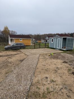 Участок выровнен, (24 куба песка), дренаж по краю участка. Колодец и переливной септик.