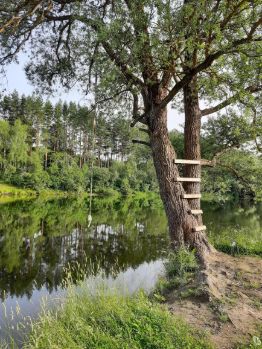 Собственный выход в лесочек к реке, до неё метров 100. В реке рыбалка, чуть дальше по берегу оборудована пара мест для купания.