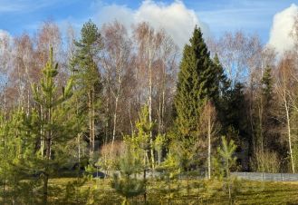 • Участок спланирован: плодовые деревья (яблони, груши, черешня), множество молодых сосен.