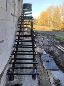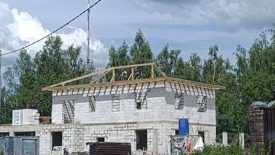 Газосиликатный блок D500. Свайно-ростверковый. Крыша металлочерепица 0,5 мм. Монолитное перекрытие между этажами. Монолитная лестница. По всем монолитным работам марка бетона М350. Межэтажное перекрытие и лестница - М400. Эксплуатируемая кровля у гаража с метал.лестницей, имеется выход со второго этажа. Утепленный потолок второго этажа. Дерево для кровли обрабатывалось хорошей огне-био-защитой. Утепленная отмостка, дренаж. Скважина 60 метров оснащена автоматикой и насосом. 2 колодца по 3 кольца из полуметровых колец. Выводы под воду/канализацию заведены в дом. Насыпь из каменной крошки для заезда на участок.
