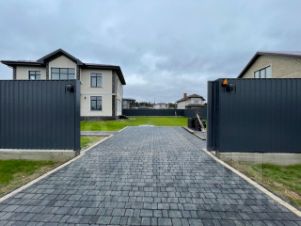 А так же положена качественно красивая брушатка с газоном и в окружности имеется забор с дистанционным управлением с пульта.