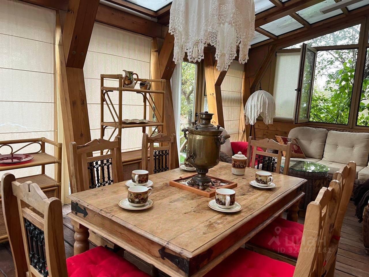 Здесь уютно, просторно, есть место для всей семьи. На участке 7 соток расположен 2-х этажный дом, также в конце участка есть отдельный домик, который служил в нашем случае летней кухней с казаном.