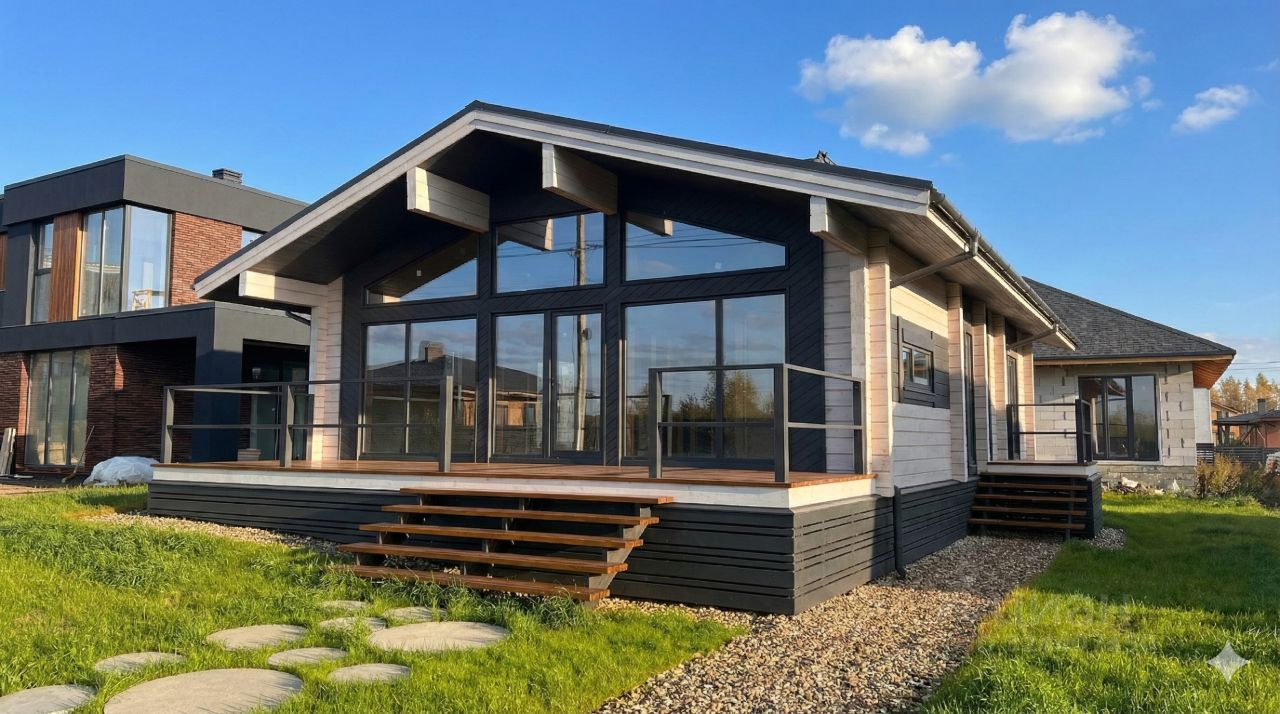 — Окна: Панорамные Rehau (70 мм), графит, с энергосберегающим напылением.