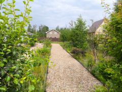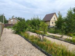 Организован красивый палисадник с плодово-ягодными деревьями и грядками. Есть место для сада и зоны отдыха.