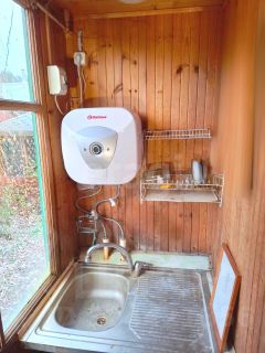 Вода в дом подведена из колодца, в баню — из собственной скважины.