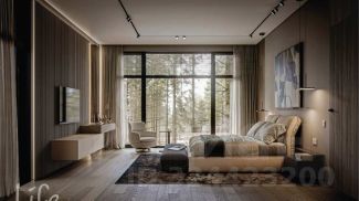 Прихожая (7,8 кв.м.), гардеробная (6,6 кв.м.), гостевой санузел (3,2 кв.м.), гостиная-кухня-столовая (76,5 кв.м.), холл (24,2 кв.м.), кабинет (13,4 кв.м.), мастер-спальня (26,4 кв.м.), мастер-ванная (8,0 кв.м.), мастер-гардеробная (5,7 кв.м.), спальня-2 (18,7 кв.м.), гардеробная-2 (3,2 кв.м.), спальня-3 (18,3 кв.м.), гардеробная-3 (3,2 кв.м.), ванная (6,2 кв.м.), постирочная (9,8 кв.м.), кладовая (3,2 кв.м.), котельная (5,4 кв.м.), терраса (81,6 кв.м.), авто навес (57,8 кв.м.).