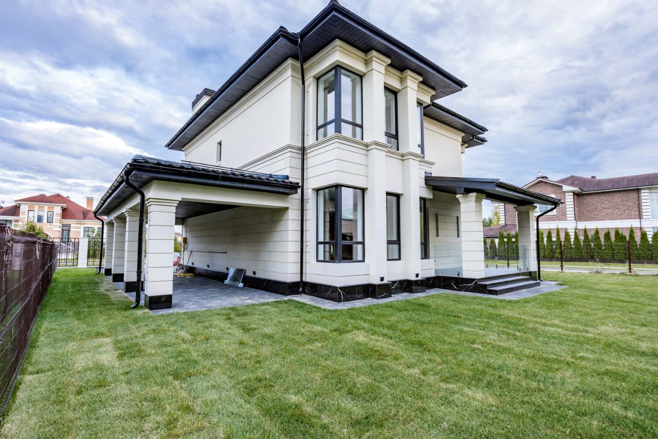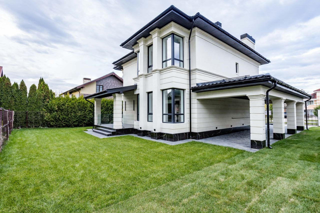 Участок 6 соток: рулонный газон с автополивом, ночная подсветка фасада, навес на 2 авто с зарядкой для электромобилей.