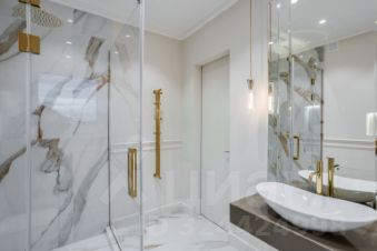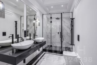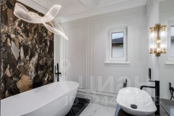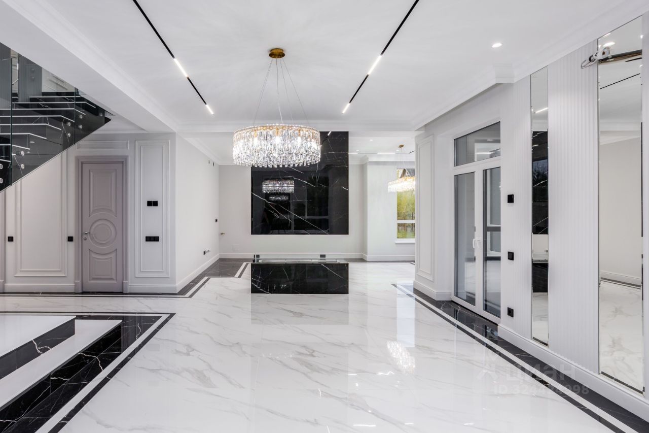 1 этаж: кухня-гостиная 50 м² с островом из кварца и техникой Gaggenau, гостевая спальня 18 м² с санузлом и скрытым ТВ в зеркале, котельная с газовым котлом Buderus, гардеробная с системой Molteni.
