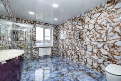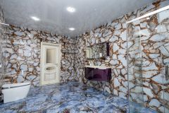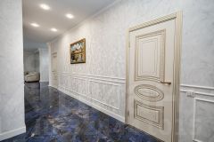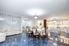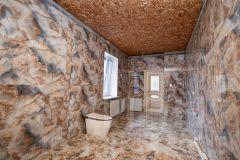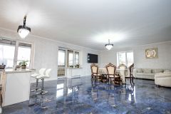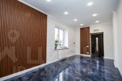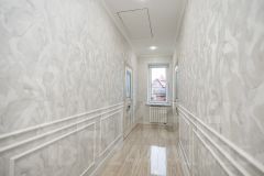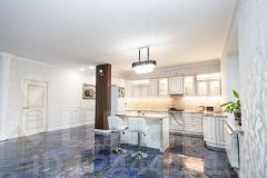 На первом этаже расположилась большая прихожая, а из нее вы сразу попадаете в просторную кухню-гостиную(70кв.м.), из которой уже можно попасть в кабинет или же спортзал(50кв.м.) со своим санузлом, также есть выход на террасу.