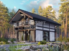 1 этаж — кухня-гостиная с выходом на террасу, гостиная с камином, кладовая, санузел.