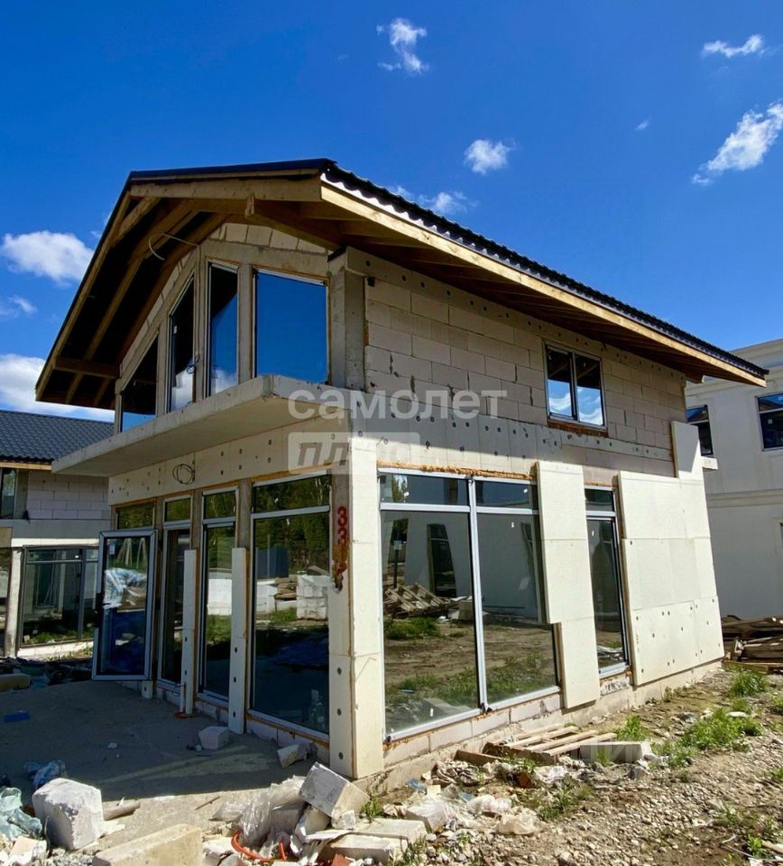 Современный двухэтажный дом 123 м² будет готов к концу 2025 года. Участок 4 сотки (ИЖС). Дом из газоблоков, с монолитным фундаментом, перекрытиями и кровлей. Потолки — 3 м. Панорамные окна, все коммуникации (газ, скважина, септик, электричество).