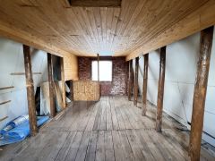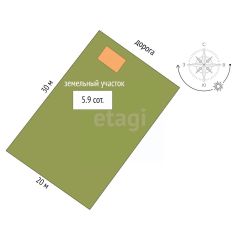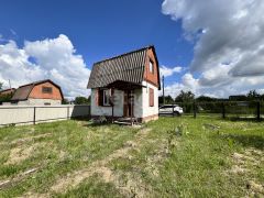 На участке имеется уютный дом, оформлен. Площадь дома составляет 33 квадратных метров. Два этажа, первый этаж просторная комната, второй этаж мансарда.