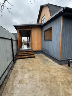 — По планировке в доме предусмотрено 2 входа: кухня-гостиная 20 м2 с выходом на террасу, 3 спальные комнаты (1 комната на первом этаже и 2 комнаты на втором этаже), два санузла, прихожая. Высота потолков на первом этаже 2,60 спальня на втором этаже 2,50