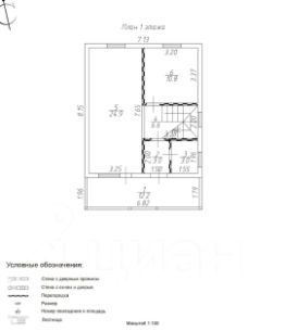 На первом этаже: Большая кухня-гостиная с выходом на крытую террасу, санузел,прихожая с центральным выходом на крытую террасу.