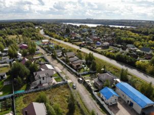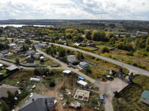 В поселке дороги из асфальтовой крошки с бордюром и освещением. На въезде — шлагбаум и фасадный забор.