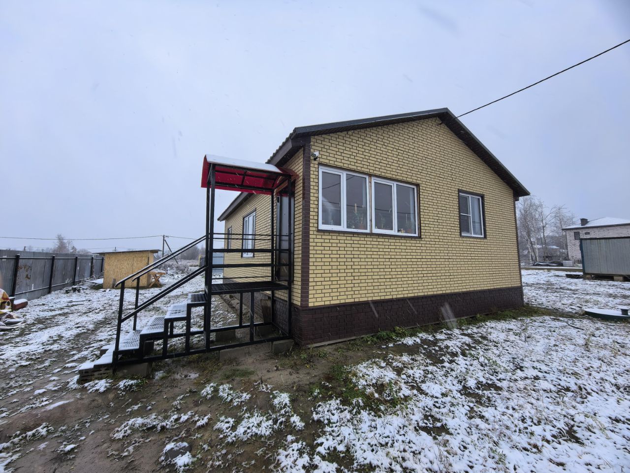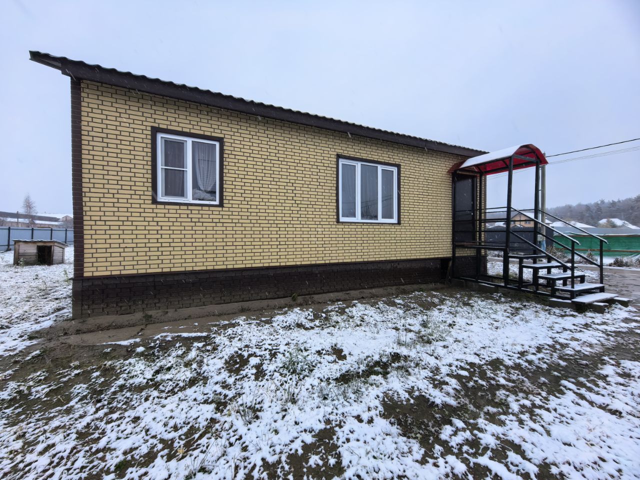 Дом каркасный, фундамент свайный, хорошо утеплён, стены пол и крыша на 200мм., высота потолка 2,75м., облицован сайдингом под кирпич, окна пластиковые, тройной стеклопакет.