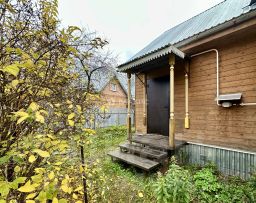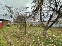 Земельный участок 7,5 соток, полностью огорожен, оснащен воротами и калиткой, есть парковка для авто. На участке имеется кирпичная баня, летний душ, сад, плодовые деревья и кустарники, цветы, есть место под огород.
