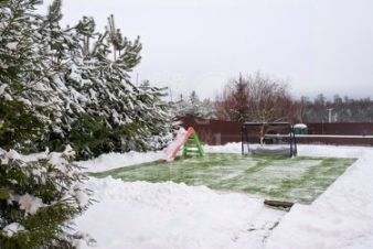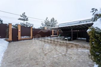 Имеется крытая парковка на три машино-места. Дом построен из монолитного каркаса и кирпича, что обеспечивает его прочность и долговечность. Ландшафт участка включает множество плодовых деревьев и кустарников, создающих уютную и живописную атмосферу.