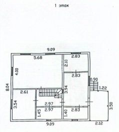 1 этаж: веранда, прихожая, бойлерная, сан.узел, 2 комнаты, кухня-гостиная