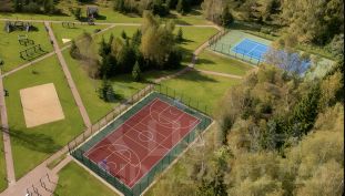 Озеро, пляж, корт для большого тенниса, площадка для игры в футбол, баскетбол, пляжный волейбол, барбекю зона, детская игровая площадка, большая прогулочная зона, круглосуточная охрана и гостевая парковка.