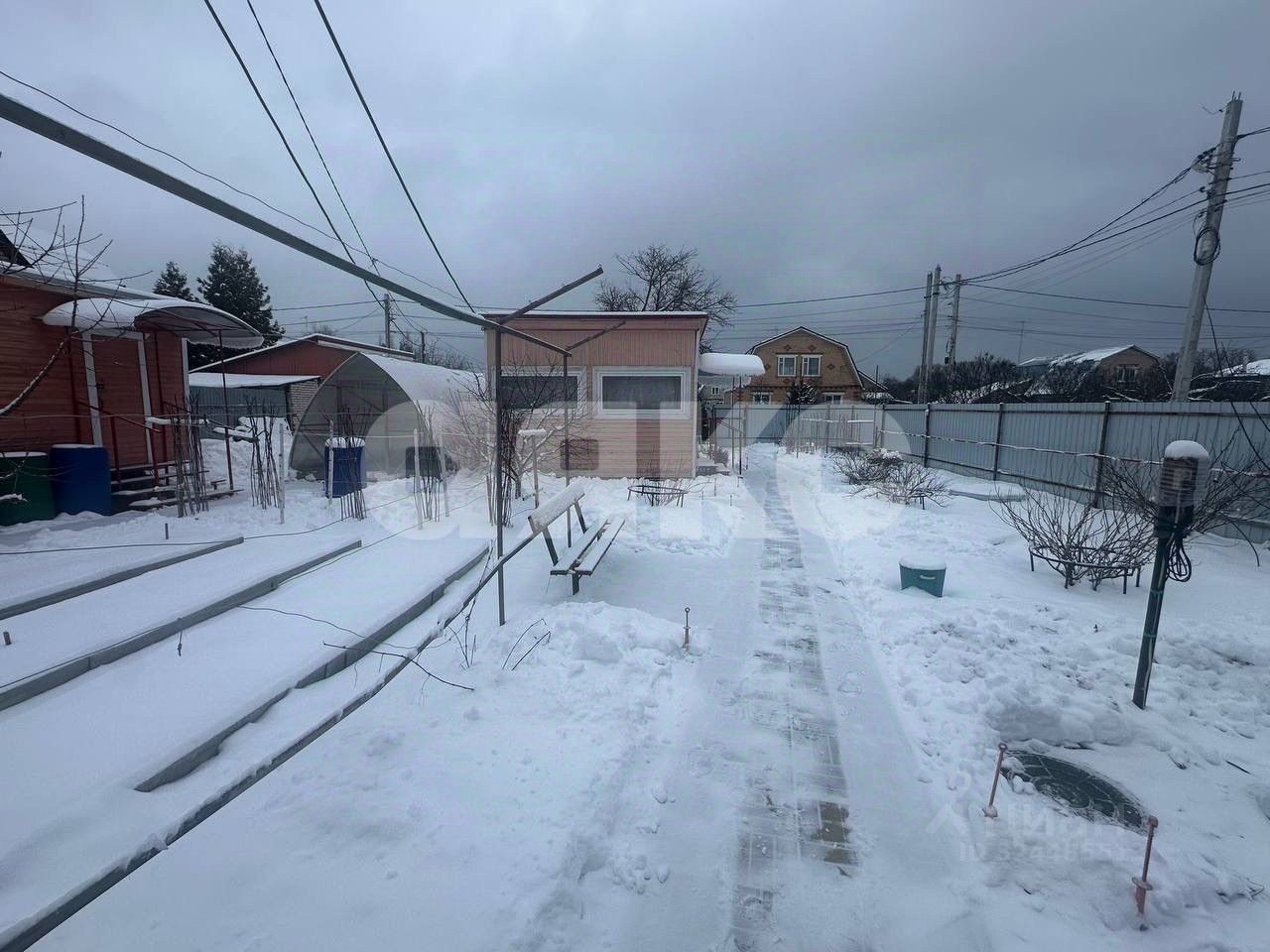 Участок ровный прямоугольной формы, сухой. На нем находятся: дом, баня, крытая беседка, теплица, гараж, хозблок. Участок ухожен, засажен плодовыми деревьями (вишня, яблоня), а также: крыжовник, смородина, малина, жимолость, виноград.