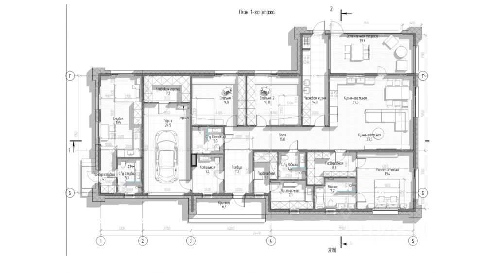 Студия с отдельным входом: 19,5 м² — идеальное решение для пожилых родителей, гостей или сдачи в аренду. В студии предусмотрен собственный санузел (5,1 м²) и тамбур.